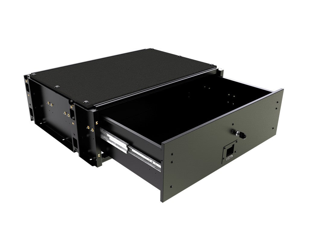 Make storing and organizing gear and valuables a no-brainer. This lockable drawer can be fitted in many vehicles as a universal drawer solution. Hide contents from prying eyes while creating more usable and easily accessible storage space in your vehicle. Engineered tough for both on and off-road travel. Product Dimensions: 620mm (24.4'') L x 830mm (32.7'') W x 270mm (10.6'') H Consists of:1 x Drawer unit with 1 drawer1 x Push to close latch with 2 keys 2 x Accessory channels4 x Eye Nuts for accessory channelInstallation Hardware includes 4 turnbuckles to secure the unitFitting InstructionMaterials used:Aluminum - Accessory Channels Sub FrameBlack powder coated steel - Drawer Bin FrameCarpet Laminated plywood - Top DeckProduct Dimensions:620mm (24.4) L x 830mm (32.7) W x 270mm (10.6) HInterior Drawer Dimensions:497mm (19.6) L x 716mm (28.2) W x 180mm (7.1) HWeight:32.4Kg (71.4lbs)Load Rating:113Kg (250lbs)