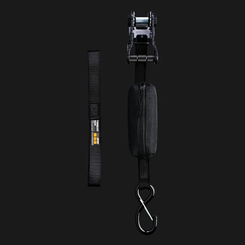 Nero, the ratchet strap built for speed, strength, and zero excess mess. Unlike traditional ratchet straps that leave you fighting loose ends, Nero features an adjustable net storage bag, keeping unused webbing secure and tangle-free.